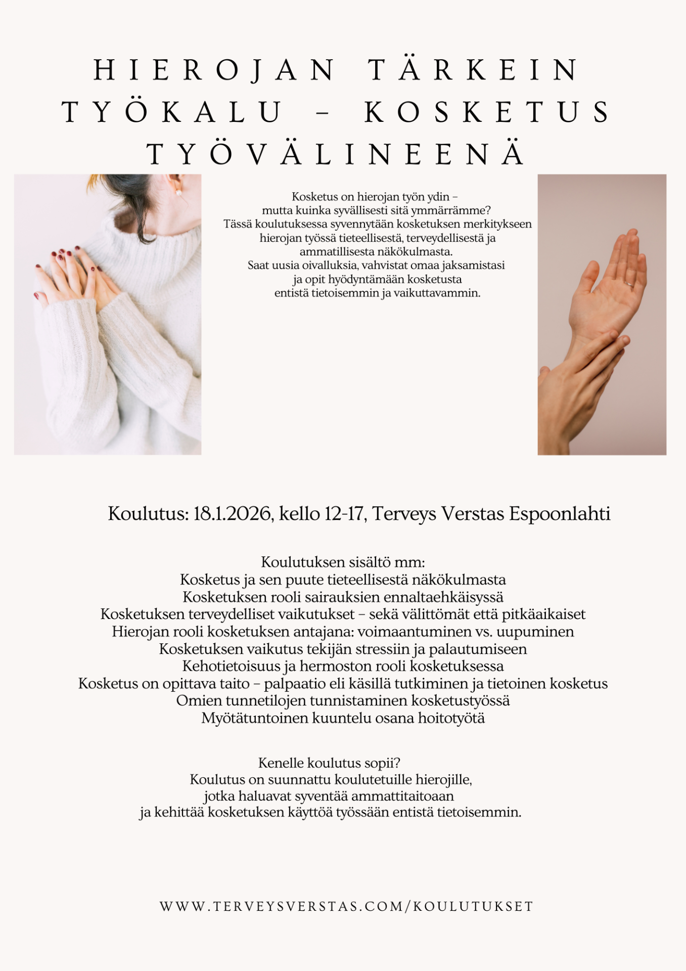 Tammikuun 2026 syventävä koulutus koulutetuille hierojille